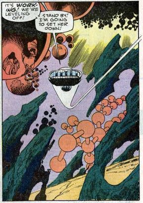 She-Hulk uses her awesome strength to move the reducto-craft into place, where everyone boards it. We see it shrink down into apparent nothingness, as our heroes enter the microverse. They fly through the trippy-looking mircoverse atmosphere, landing on some sort of planetoid. Reed encourages everyone to spread out, suspecting that Psycho-Man is likely already alerted to their presence. Johnny and Reed have an aside, where Reed says helping Sue work through her issues must be a priority, but he admits he’s still worried about the Beyonder running around unchecked.