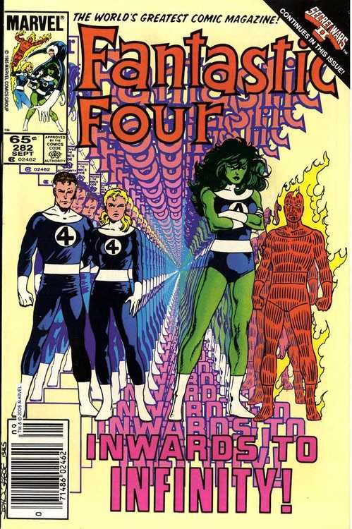 Can we talk about Secret Wars II? Let’s talk about Secret Wars II. The gimmick was that during the event’s nine-month running time, the series would cross over into every other Marvel comic. The ambition is admirable, but it was not wholly successful. Some of the Marvel writers and artists managed some interesting stuff with the Beyonder character outside the main SWII series, but others did practically nothing with the Beyonder. Often, fans bought a comic with the Secret Wars II logo on the cover, only to find they’d spent money on something unnecessary to the Beyonder’s story. That’s the case with this issue, because as Reed mentions the Beyonder here, we get one measly panel of what the Beyonder is doing on Earth, a recreation of a scene from SWII #3. That is it for this crossover. (To be fair, though, writer-artist John Byrne will use the Beyonder to much better effect in issues 285 and 288.)