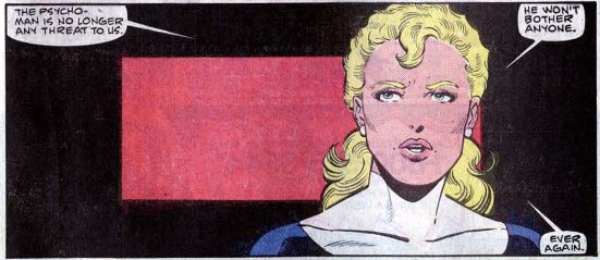 Later, Pearla’s people have this big celebration now that they’re no longer under Psycho-Man’s reign. Sue steps out saying that she’s grown up a lot from this experience. In a big dramatic speech, she announces that from now on, her FF codename is no longer the Invisible Girl. She is now the Invisible Woman.