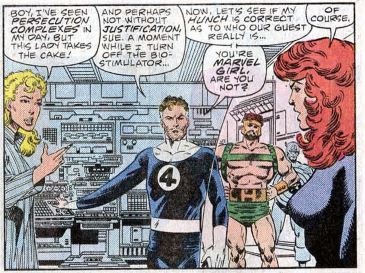 Flame on: Johnny makes a joke about not telling comic publishers about the FF’s space adventures, saying the publishers told him “Cosmic doesn’t sell.” This has got to be a meta thing, right?
