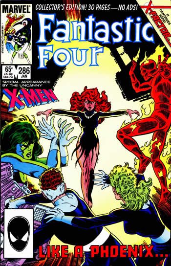Captain America and Hercules are the only Avengers present, and they fill the FF in on what just went down in Avengers #263, where, after preventing a plane crash, they recovered a mysterious pod from the bottom of the ocean. The pod is impenetrable, but Sue turns it invisible to reveal a human redheaded woman inside. Later that night, while Reed, Cap and Hercules stay up late to research the pod, freaky stuff starts happening with objects and then people floating around in the air. The pod breaks open, and the woman inside unleashes telekinetic fury on everyone, spouting angry gibberish about “X-sentinels” and a S.H.I.E.L.D. Even though it takes the characters some time to figure it out, I’ll spill it right now: This is Jean Grey, back from the dead.