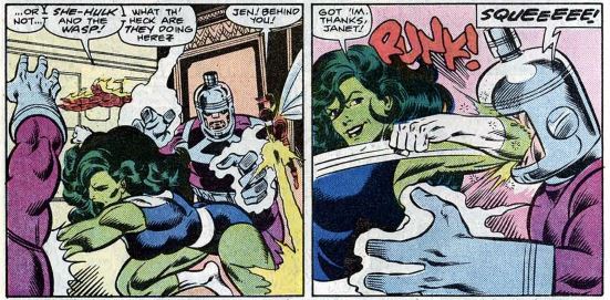 Fantastic fifth wheel: A big deal is made about how this is the first time Dr. Doom meets She-Hulk (Secret Wars happens after this in his personal timeline, remember), and he describes her as “beautiful.” I wonder if writer-artist was setting up some future story here.