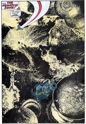 The “disintegrator” is really the cage with Blastaar’s prisoner. It’s really Annihilus, now at full power with him reunited with the cosmic control rod. He easily knocks out the Fantastic Four. Back aboard the S.H.I.E.L.D. satellite, we learn the Negative Zone portal is growing, and will destroy the earth in less than five hours.
