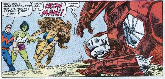 Trivia time: Iron Man is wearing the red and white “centurion” armor during this period. This is the armor he developed to defeat Obidiah Stane when Stane became the Iron Monger. I love that this era of Iron Man so heavily influenced the first two Iron Man movies.