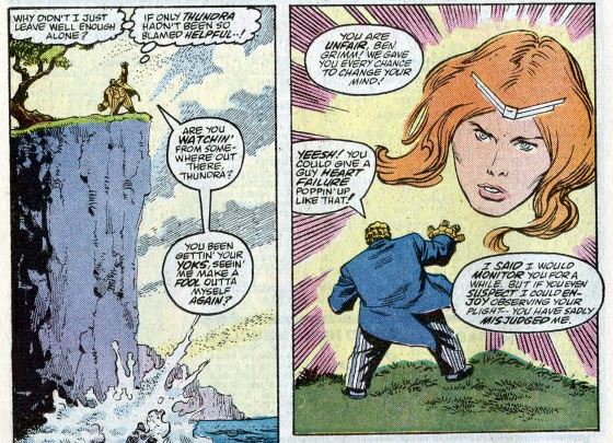 Clobberin’ time: Just before going back in time, Ben thinks to himself that yes, he does love Thundra as well. This is an emotionally confused time for ol’ Benjy.