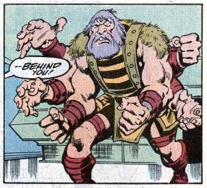 Fantastic fifth wheel: After her short membership in the FF, Thundra made a bunch of appearances in Marvel Two-in-One, where she and Hyperion (leader of the Squadron Supreme) had a partnership of sorts. She also had a brief involvement in the all-female super-powered wrestling group, the Grapplers. She returned to her home timeline in Marvel Two-in-One #67. She’ll next appear in Captain America #392 as part of a mass gathering of superhuman women, and then in West Coast Avengers #75, for a battle against Arkon.
