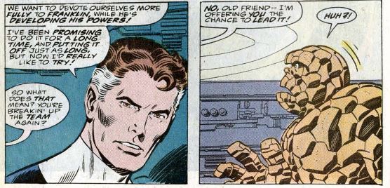 Four and a half: We’re told through narration that Reed and Sue still have no idea Franklin’s been doing the superhero thing alongside the Power Pack kids. There’s a one-panel flashback to Franklin and the Pack fighting in the Snark War.