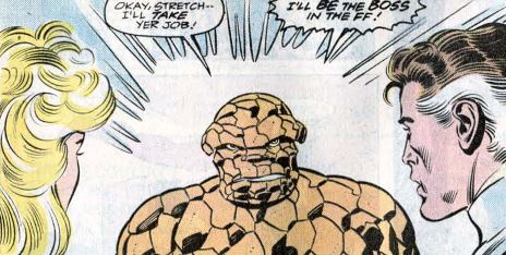 Clobberin’ time: Despite his still being mopey about Johnny and Alicia, Ben says he justifies his staying with the FF because he feels it’s better confront your problems and deal with them, rather than run and hide from them.