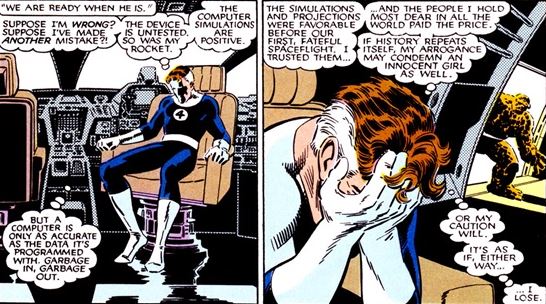 Unstable molecule: What does it say about Reed that this old (and fake) journal shakes him to his core like this? I suppose this can be interpreted as part of what’s driving him to take a break from superheroing to spend more time with his son.