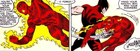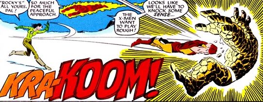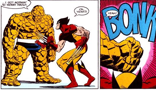 Clobberin’ time: A lot of fans have disliked how Ben is able to knock Wolverine unconscious with a comedic bop to the head. Try to remember that this was before Wolverine achieved the godlike “ultimate badass” status he enjoyed in the late ‘90s/2000s, so it was possible for the ol’ canucklehead to get roughed up in a fight.