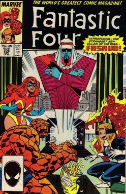 Reading the Fantastic Four comics from the start. We’ve got the new team now — Ben, Johnny, Crystal, and Sharon (Ms. Marvel) — so it’s time for them to go up against a major villain. And what a villain this is.