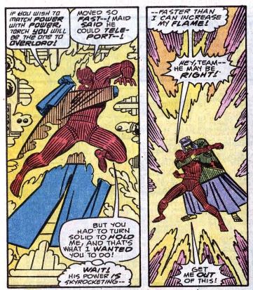 Flame on: Johnny’s ability to heal burns appears to be new. He says he does it by drawing heat away from the wound, which I don’t think is how burns work. A later letters page will confirm that Johnny can only heal minor burns.