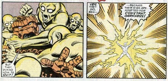 Clobberin’ time: Ben’s friendship with the Mole Man came from issue #296, in which Ben was a bigwig living in the Mole Man’s kingdom for a while, just before he rejoined the FF.