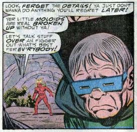 Trivia time: Who’s this Tyrannus guy? He’s an old-school Hulk villain, dating all the way back to the Hulk’s fifth appearance, most recently seen in Incredible Hulk #243. We even saw him briefly back in Fantastic Four issues 126-128. I suppose name-dropping him in this issue to show how both he and the Mole Man can both have giant underground kingdoms.