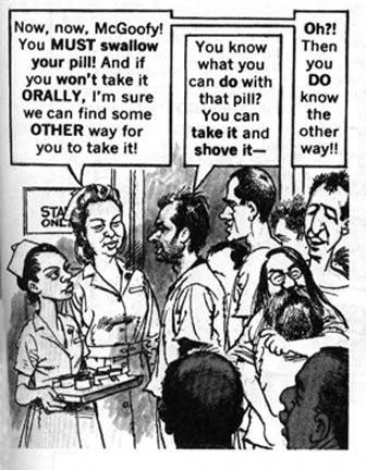 Movie geekishness: Nurse Ratched appears on a lot of “best movie villain” lists, but is she really evil, or just doing her job? I could go either way. She’s a harsh disciplinarian, but these bunch of jokers could probably use a little discipline.