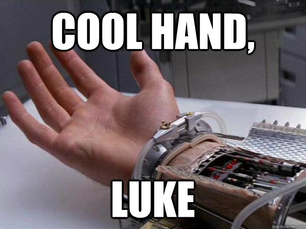 Movie geekishness: I liked this movie, but I have a lot of questions. The biggie is, where and when does this take place? This “jail” is more like a summer camp. Also, the movie begins with Luke committing vandalism and letting himself get caught by cops, at which point he breaks the fourth wall and smiles at the camera. What’s that about? We eventually get some backstory with Luke and his relationship with his mother. This establishes him as a non-conformist, but is that one character trait really enough to explain all his actions throughout the movie?