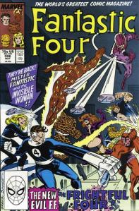 Reed finishes a device to cure Johnny, saying part of it comes from what he learned in his recent magic-based adventure with the Silver Surfer (in Silver Surfer #15-17). Johnny is hooked up to the machine, and says he feels a freezing sensation as all the excess flame is being drawn out of him. Just as the procedure reaches a crucial point, the Frightful Four attack. (The Wizard used a computer virus to help his team gain entry.)