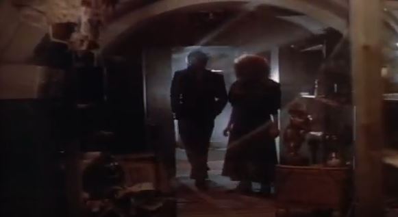 – When Micki shows Lloyd the vault, she points out cursed antiques whose stories the audience doesn’t get, including a statue that turns people blind and a lamp that burns down houses. The killer doll from the first episode is down there, too, and at one point it spring to life and looks at Micki.