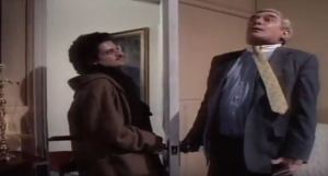 – This is the first of three episodes in which Angelo Rizacos plays the villain. To his credit, though, it’s a different villain type each time.