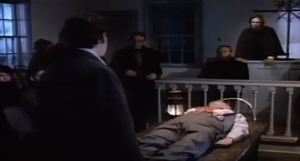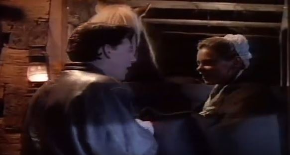 Ryan, meanwhile, falls for Laura, Josiah’s daughter, who is in an arranged marriage to another suiter, Matthew. Ryan loves her so much, he decides to stay and become a Pentitite. To stay, and to have the right to court Laura, Ryan must defeat Matthew in ritualistic combat (!). When Micki returns to the store, she and Jack discover the quilt is a fake, and Effie still has the real one.