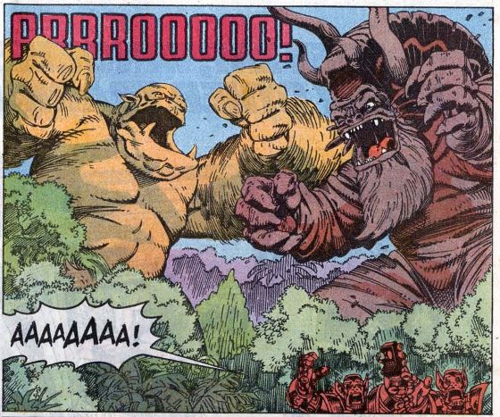 The Skrulls arrive on Earth, tracking what they say are some “Skrull-like” creatures. It’s all the monsters on Monster Island, which you’ll remember is the home of the giant creatures controlled by the Mole Man. The Skrulls use “slave darts” to take over the monsters’ minds and use them to help find De’Lila somehow. Underground, the Mole Man learns about this and swears revenge.