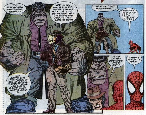 Fantastic fifth wheel: This story arc finds members of the New FF just wrapping up some big stories individually. Spider-Man just recovered from the Powerless storyline that had him be an ordinary human for a while. Wolverine just got his freedom back after being a prisoner in Genosha during X-Tinction Agenda. The Hulk is here dueling three personalities — his smart-but-brutish grey form, good old Bruce Banner, and the classic “Hulk smash” green Hulk. Danny Ketch just recently became Ghost Rider, and is still mourning the death of his sister Barbara.