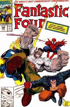 Reading the Fantastic Four comics from the start. We met them in the last issue, now in issue #348 we see them in action. Spider-Man, Wolverine, Hulk, and Ghost Rider — the New Fantastic Four!