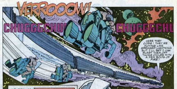 We catch up with Sharon, who reveals that she let herself be taken captive by the TVA. She uses a wrestling move to get away from her captor. She reunites with Ben and Johnny who then reunite with Reed and Sue. Then, in this crazy story, things take an even crazier turn. Our heroes end up in a railroad yard, full of old-timey trains. Reed identifies this as the Cross-Time Central Railroad. It’s run by an alien named Casey, who explains he is enamored with antique Earth trains.