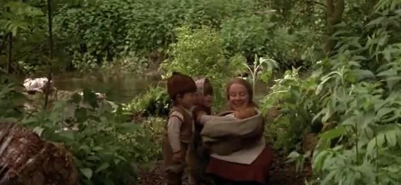 We start with Kaiya and the kids at the riverside, all smiling at the baby. Willow storms up and declares that no one in the family is to fall in love with the baby, but his words go unheeded. It’s dad humor! He protests “I will not be ignored!” as his family ignores him, walking off with the baby.