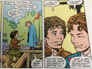 The tie-in books describe the High Aldwin as the “informal leader” of the Nelwyn village, so that the village council looks to him for advice on especially difficult matters. The High Aldwin’s name is Junn, except that upon becoming High Aldwin, he gave up his birth name, replacing it with “High Aldwin,” as per tradition. Upon death, a High Aldwin’s name is then restored for use in the Nelwyn archives. Also, it was in this part of my research that I came across fleeting references to other Nelwyn villages, each having its own High Aldwin. Most of the tie-in fiction, however, ignores them in favor of focusing on this one Nelwyn village. The “High” part of the Aldwin’s title comes from how the apprentices are also known as “Low Aldwin.” The tie-in books also state that both men and women can be High Aldwins, with the women often being stronger in magic than the men.