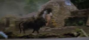 On the plus side, all this animal carnage provides some character development for Willow. Even though he’s not the one doing the actual fighting, this scene establishes him as the hero, as he protects his kids, and then decides to take the baby the village council, even at risk of harming his status in the community.
