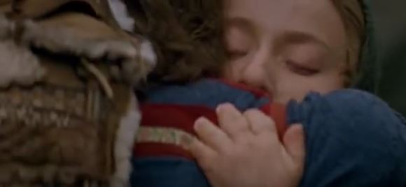The kids offer to join Willow on his journey to give him some help. He doesn’t actually say no, but instead says what a lucky father he is. He gives the kids a hug and tells them to go play. Mims says “Goodbye Dada” here, but it’s hard to hear unless you’ve got the volume way up. Kaiya then helps Willow with the large backpack he uses to carry the baby. She says “We’ve never been apart.” I think we can assume she means for an extended period of time, because we already saw her stay home while he went to the festival. The tie-in books offer no background information about Kaiya. How did she meet Willow? What was her life like beforehand? We may never know.