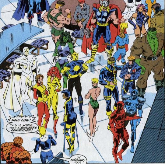 Crystal had joined the Avengers by this time, and the Marvel Wiki insists that she also attended the summit, but I don’t her anywhere.