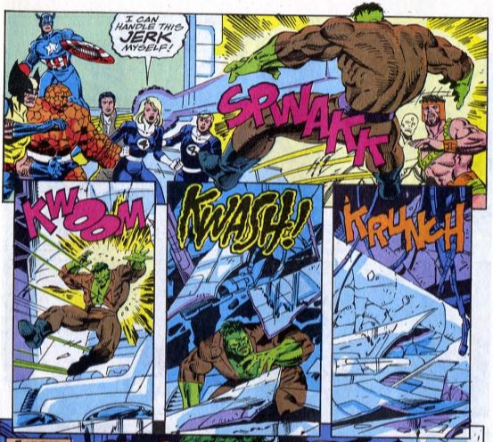 Fantastic fifth wheel: Once again, both She-Hulk and Frankie Raye appear in this issue, but have no speaking lines.