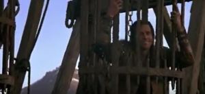 Once again, the jokey tone switches to something more serious, as Airk says “The NockMaar army destroyed Galladoorn.” Madmartigan asks, “The castle?” and Airk answers, “Bavmorda’s troops are crushing everything in sight.” Madmartigan asks to be let out of the cage, and then says one of the movie’s most famous lines, “Give me a sword, I’ll win this war for you.”