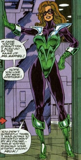Fantastic fourth wheel: Sharon is back with the team, albeit temporarily. The issue wants to set up a mystery as to who her new boss is, although it was revealed in issue #367 that it’s Dr. Doom. One line of dialogue states that Sharon is able to lift ten tons.