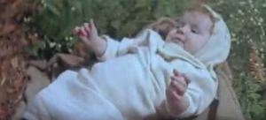 Willow, who seems to be taking all this in stride, says “But she’s just a baby.” Cherlindrea responds, “She is very special. My Brownies have been searching for her ever since we heard she was born.” The camera cuts to the Brownies as she says this, letting the viewer know that these are the Brownies. Cherlindrea says, “Elora Danan has chosen you to be her guardian.” As she says this, the baby levitates into the air, and into Willow’s arms. “Me?” Willow says. Cherlindrea smiles and says, “Yes, she likes you.” There’s a close up of the baby, followed by the only close up we get of the fairies. As many viewers have pointed out over the years, yes they do look nude.