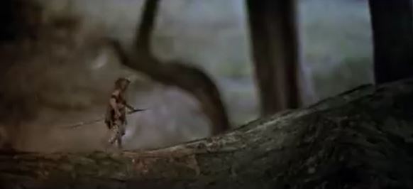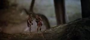 Franjean continues, “Only a great sorcerer can use it, not a stupid peck like you.” The movie keeps the borderline-offensive “peck” running joke going, and Willow doesn’t like either, reacting with an angry glare. During all this, there’s some interesting special effects here with the Brownies running along a log, and then falling off of it, all while Willow walks at a normal pace. Physics demands that the Brownies would have be moving incredibly fast to keep with Willow, based on their differing sizes, but the movie’s VFX do a good job with the illusion so that viewers don’t question it.