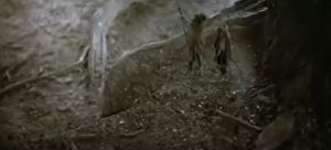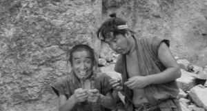 This is a simple scene that provides a few small pieces of exposition, while establishing Franjean and Rool as Willow’s traveling companions and comic relief. Except that this scene has its roots in classic foreign cinema. It’s no secret that Willow is heavily influenced by Star Wars, and most everyone knows that Star Wars was heavily influenced by the films Akira Kurosawa, with The Hidden Fortress being the one cited most often. In The Hidden Fortress, a princess and a warrior are fighting for their kingdom, but most of the action is seen through the POV of two lowly peasants, Tahei and Matashichi. These characters are often cited as the inspirations for C-3PO and R2-D2. I rewatched The Hidden Fortress in preparation for this blog post (You’re welcome!) and I can’t help but see big similarities between the two peasants and the two Brownies.