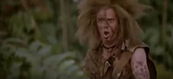 Madmartigan addressed the Brownies as “Mumbo” and “Jumbo” and he asks them to get him “some eggs or something” to eat. We’ve heard birds chirping in the background throughout this scene, so it’s within reason that there might be nests with eggs nearby. Franjean says “We are not afraid of you.” Madmartigan demands “Now!” and the Brownies run off, squealing in terror. The phrase “mumbo jumbo” is believed to have first appeared in the 1795 book Travels in the Interior of Africa, allegedly in reference to West African god Maamajomboo. The Wikipedia page for “mumbo jumbo” has a list of times it’s been referenced over the years, but Willow is not included.