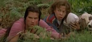 Dogs are heard barking in the distance, no doubt the Death Dogs from earlier in the film, and our heroes duck and hide in the tall grass. We get a reminder that the Brownies are still with us, as Franjean says “Hurry, big dogs.” Willow calms down and says, “Look, I’m sorry I got angry. We wouldn’t have escaped without you.” Madmartigan takes note of the baby, who smiles at him. But then he puts on the tough guy act and says. “Don’t expect me to help you again.”