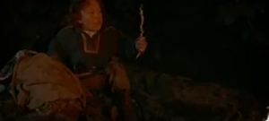 Madmartigan says “Good night, Willow,” and he lies down to sleep by the fire, in a fetal position. Then it’s time for comedy shtick with the Brownies, as they are also sleeping next to the fire. Rool has a nightmare about rats, which wakes up Franjean. “You and that stupid rat dream,” he says. Do I dare ask if these two are a couple? Do fans ship them?