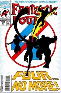 Reading the Fantastic Four comics from the start. The previous issue promised “Someone will die!” And yes, a main character bites it in issue #381, so why isn’t this mentioned among historically important storylines? Let’s find out.