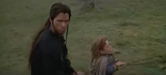 Sorsha rides up next to them and glares menacingly. “Elora’s cold and hungry,” Willow says. “She knows me. Please let me take care of her.” Sorsha answers, “I don’t need help from a peck.” So, there’s that word again. This time, it’s Willow’s turn to glare menacingly at her. Madmartigan also glares at her, but in a different way. She asks, “What are you staring at?” He says, “Your leg. I’d like to break it.” Not fazed, she responds, “You might find that difficult, slave, while I’m up here and you’re down there.” She rides forward, and Madmartigan utters, “I hate that woman.”