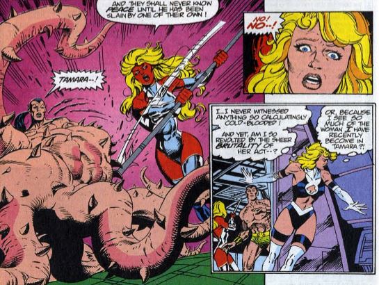 Fantastic or frightful? Shrug. All the Tamara vs. Xylym drama is only meaningful to those were following the Namor series at the time. That leaves the Lyja plot, which is just gross and weird.