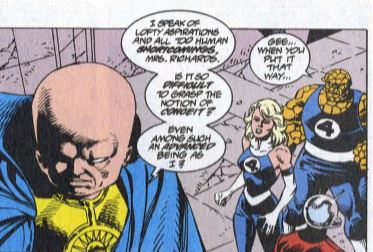 Four and a half: Kargul’s introduction fills in a lot of gaps as to where Franklin went during all his time-traveling. This is the first we’ve seen of Kargul in Fantastic Four, but he was a minor villain in the Thor Corps series.
