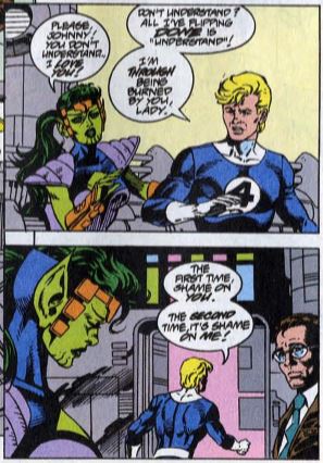 Flame on: After almost warming up (heh) to Lyja in recent issues, Johnny says he’s had enough, and he’s back to full-of-rage mode which how he was during the start of Tom DeFalco’s run on the series.