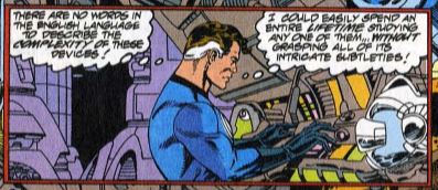 Then there’s a few more pages of the FF fighting Galactus, with Sue saying they’re only trying to distract him long enough for the alt-timeline Reed to return from Space. This gets us into the “What If?” part of the story, where in this timeline, Reed instead of Johnny was sent to space to collect the Ultimate Nullifier. While inside Galactus’ home, Reed becomes distracted by all the scientific wonders he sees there, with one almost blowing up in his face. Despite getting distracted, he insists that he must find the Nullifier soon.