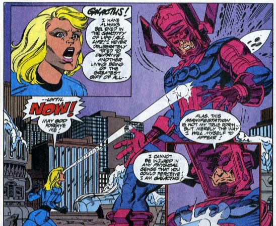 Fade out: Sue says she has always believed in the sanctity of life, except that Galactus pushed her to such extremes that she has no choice but to try to kill him.
