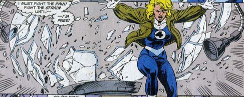 Fade out: Sue has to struggle to escape from her cage/dome thing she’s in, fearing that she suffered a concussion when Nathaniel knocked her out last issue. She seems to recover from it pretty quick.